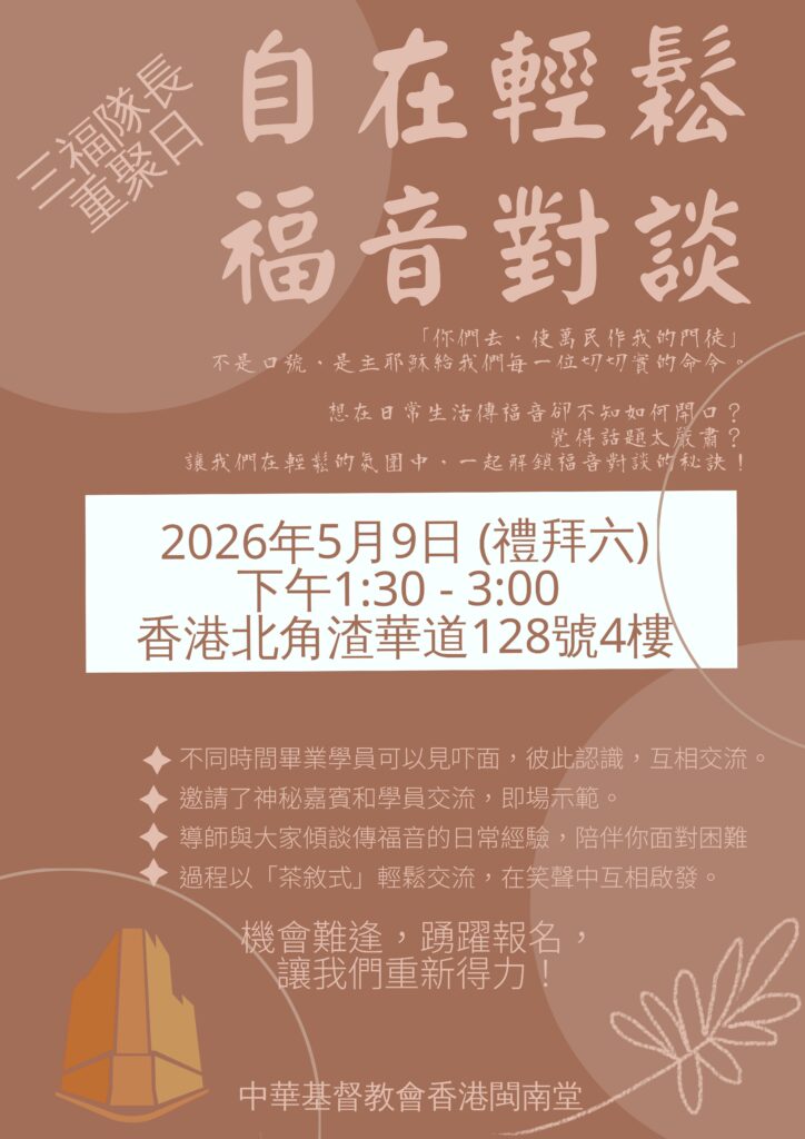 閩南堂的禱告良伴正是讓我們成長的平台,每個星期有20-30分鐘的相聚,分享你的生活和情感,以彼此代禱交托給天父。