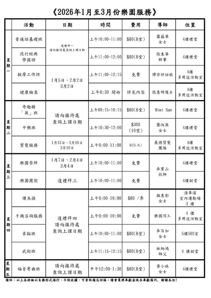 2014年,開辦平日晚間的聖經課程,名為「樂道」。